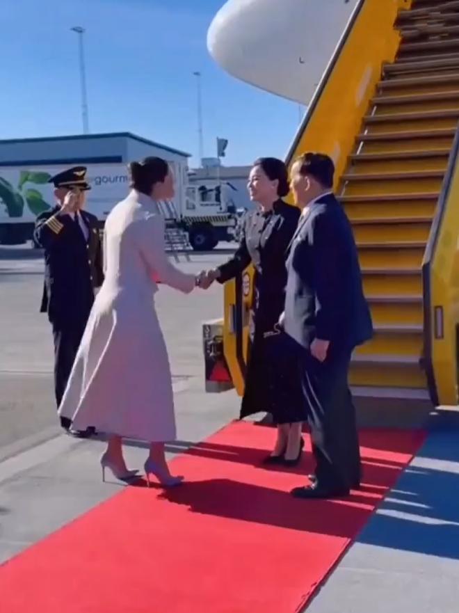 让人没想到的是瑞典女王储亲自接机,一袭浅色风衣挽起长发尽显女王储的优雅气场,她既没有过度张扬,又恰到好处地凸显出女王储温婉大气的气质!