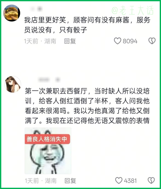 第一次当服务员的脑子乱码时刻,口不择言尴尬的抠出三室一定哈哈哈哈哈