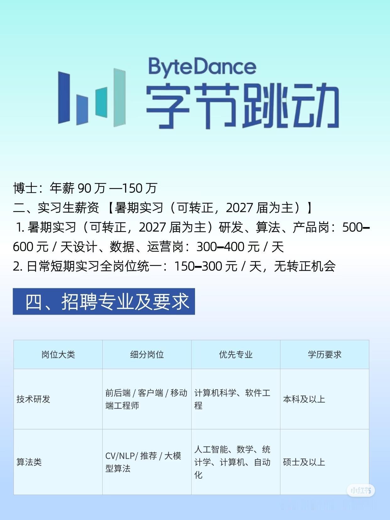 看完字节跳动招聘工资,你还相信读书无用论吗? 像实习生一天五六百块钱,本科生一