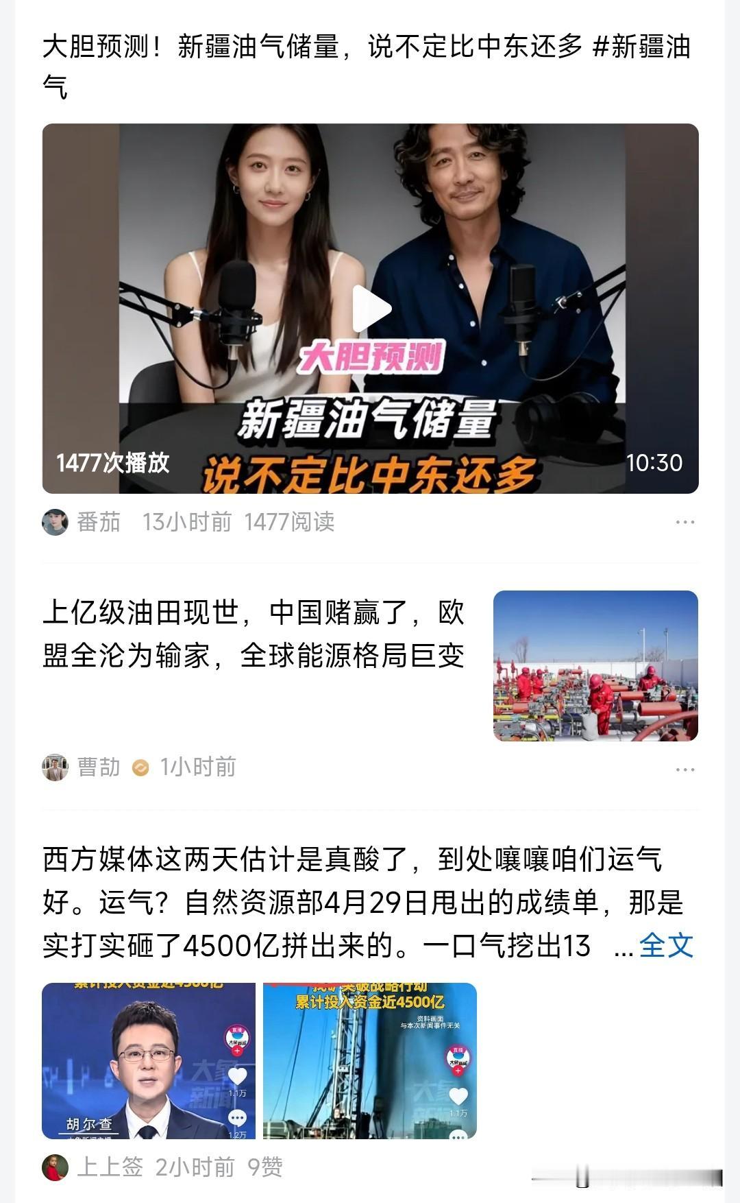 而咱们也是实时公布的这么多油气资源,让你那些捂着油气资源不卖的国家看看。今天你们捂着油气资源惜售,明天怕是想卖也卖不掉了吧?