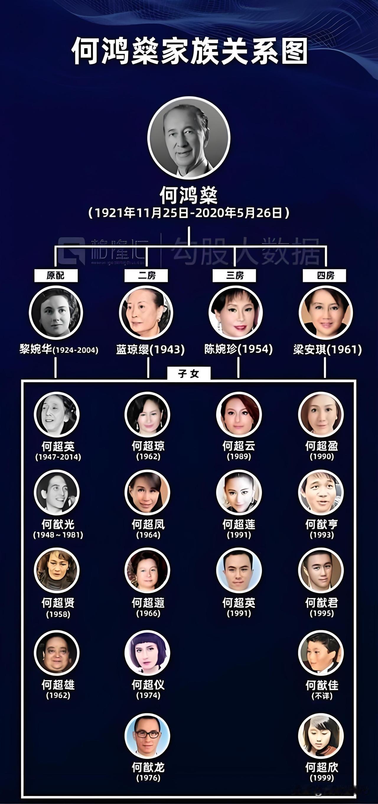 →何超琼(二房): 家族真正的“定海神针”。从赌王手中接管庞大的商业帝国,经营得有声有色,一点不比当年何鸿燊差,是公认的商界领袖。