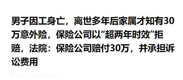 信源:男子因工身亡,离世多年后家属才知有30万意外险,保险公司以“超两年时效”拒赔,法院: