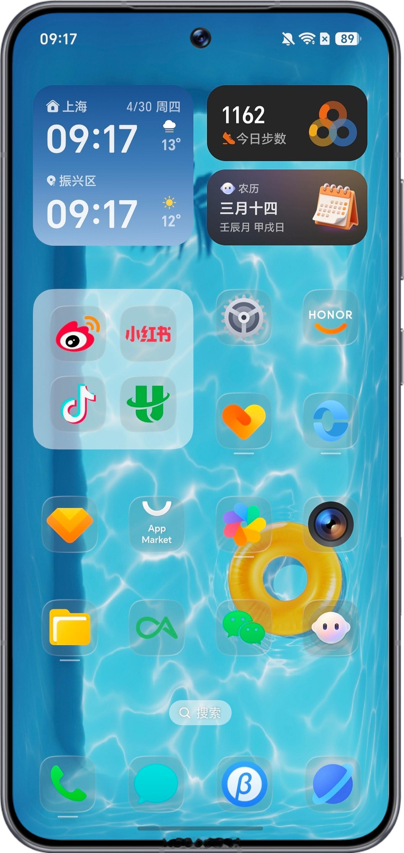 五一过后就是夏天啦,先换张超清爽的壁纸这个主题互动很好玩,泳池里的黄色泳圈会随着重力自由漂浮,MagicOS10 DIY锁屏个性化程度很高,可以尽情发挥创意