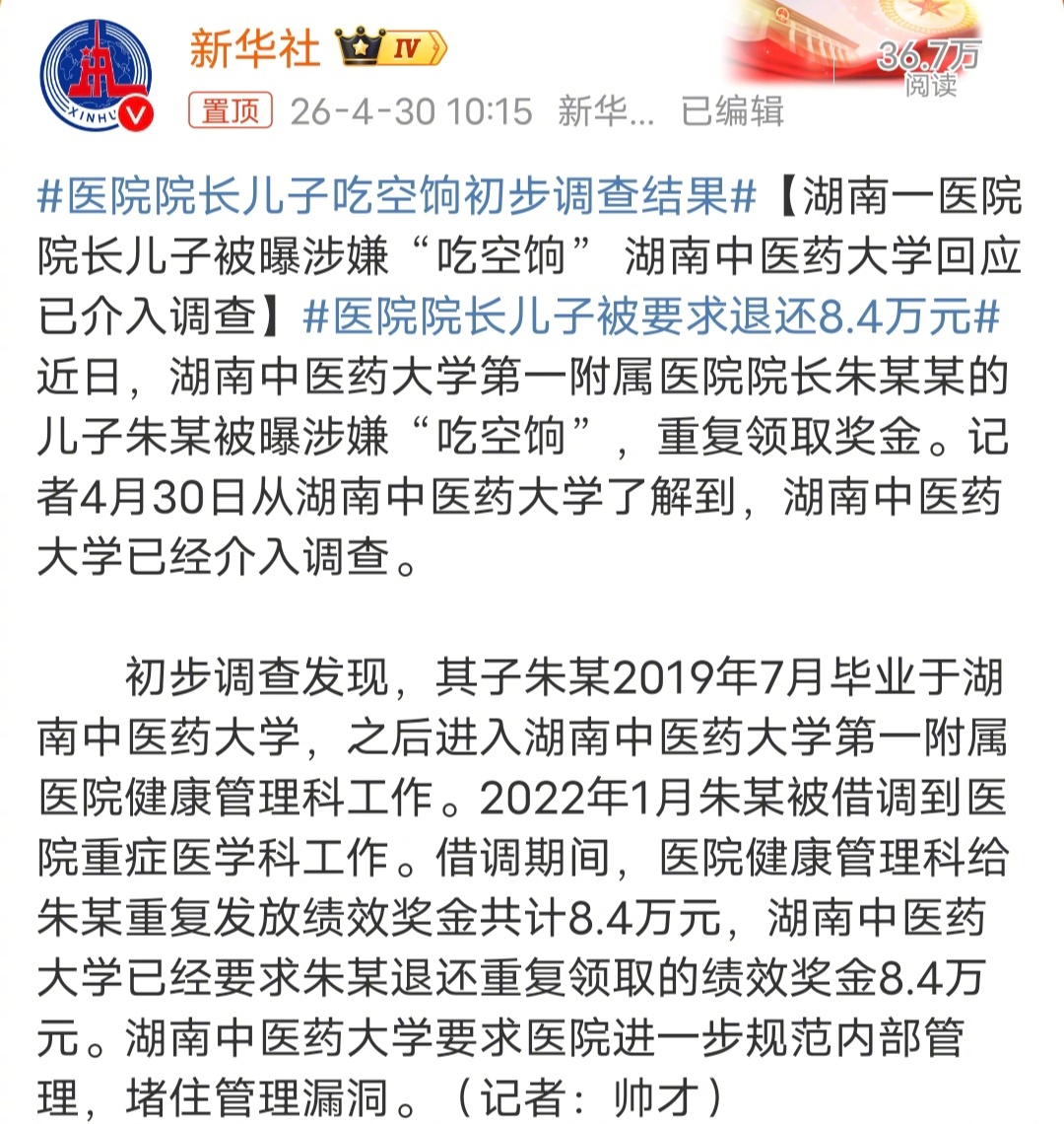 “拔出萝卜带出泥!”湖南,一女子实名举报,医院院长儿子吃空饷6年,每年光奖金就2
