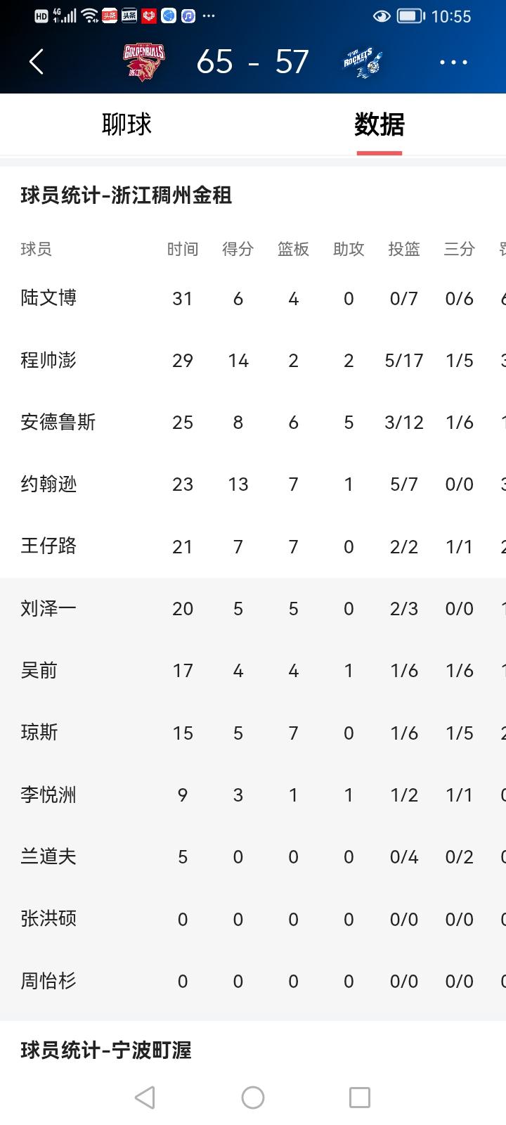 宁波町渥队也不甘示弱,他们以顽强的防守著称。球员们紧密地贴防着对手,不给浙江稠州队任何轻易得分的机会。在防守端,他们就像一堵坚固的城墙,让对手的进攻一次次无功而返。而且,他们在进攻端也有着自己的特点,通过巧妙的战术配合,不断寻找着对手的防守漏洞,一旦抓住机会,就会果断出手。