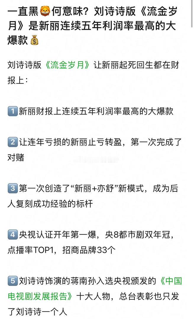 刘诗诗版《流金岁月》是新丽连续五年利润率最高的大爆款