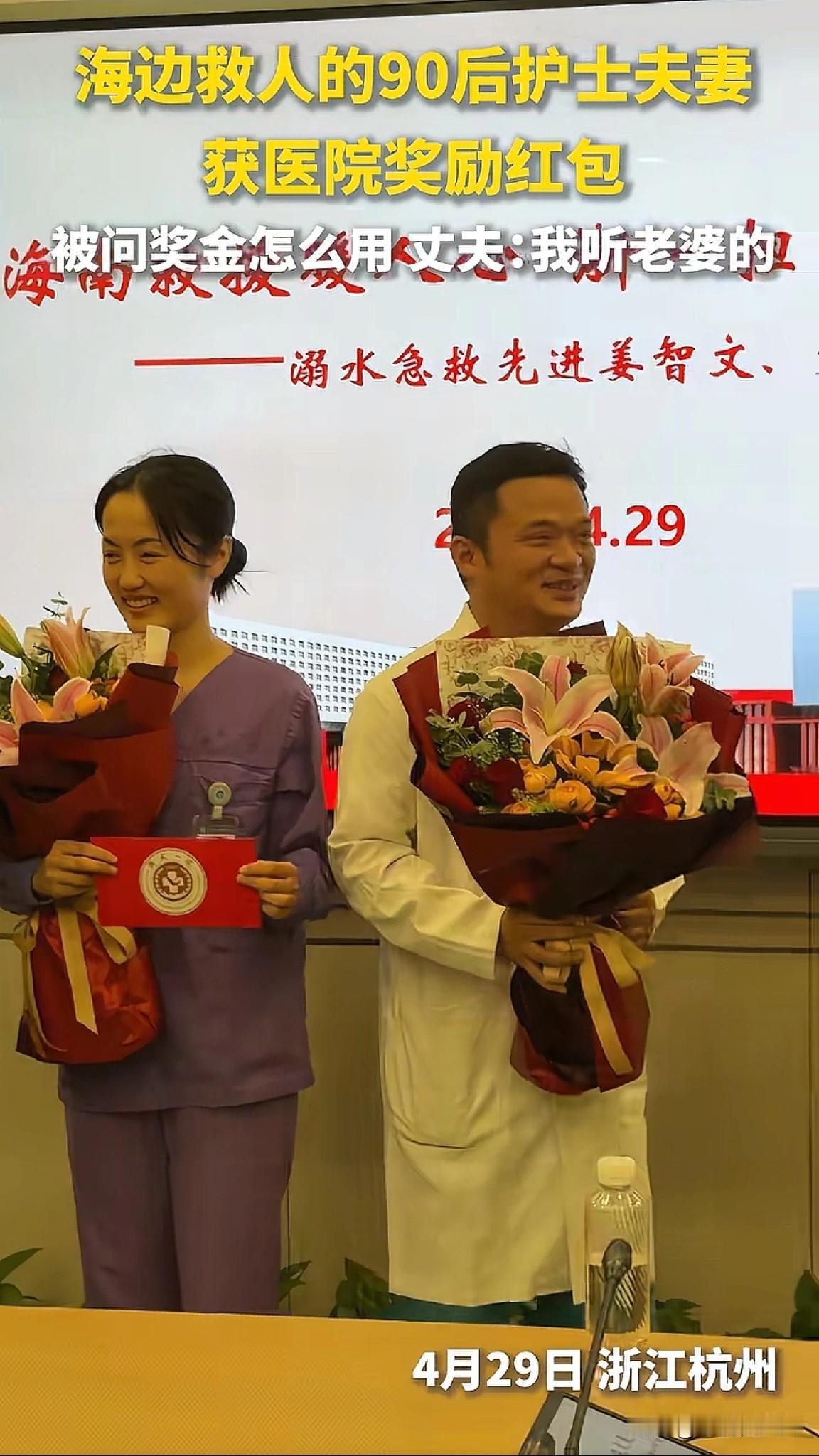 情商太高了! 在海南救人的90后护士夫妻,不仅得到了现金和证书的奖励,还得到了