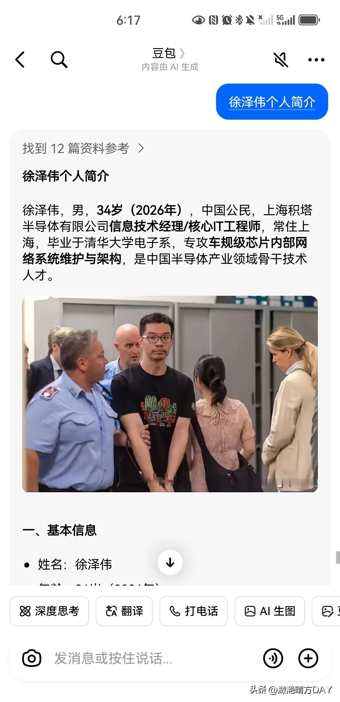 要知道徐泽伟作为上海积塔半导体有限公司的信息技术经理,也是核心的IT工程师,专攻车规级芯片内部网络系统维护与架构,是中国半导体产业领域骨干技术人才,这是怎样重要的人呢,可以想象。
