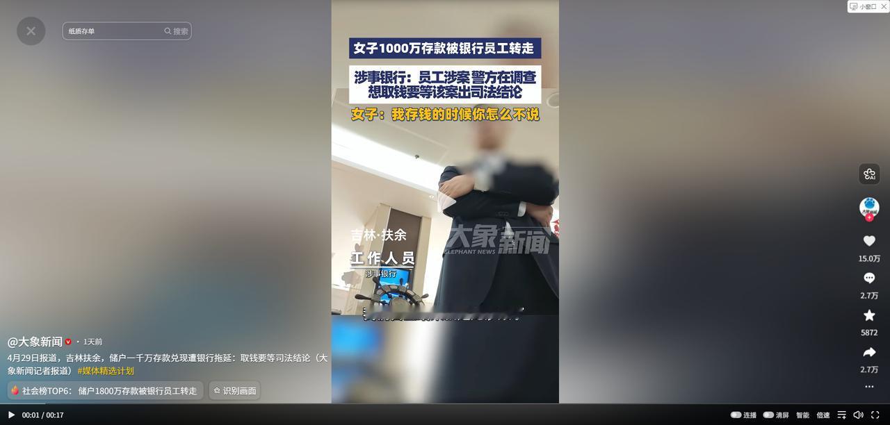 调查过程中,又发现另一位储户王女士,遭遇几乎一模一样,金额也不小,加起来已经是上千万级别。