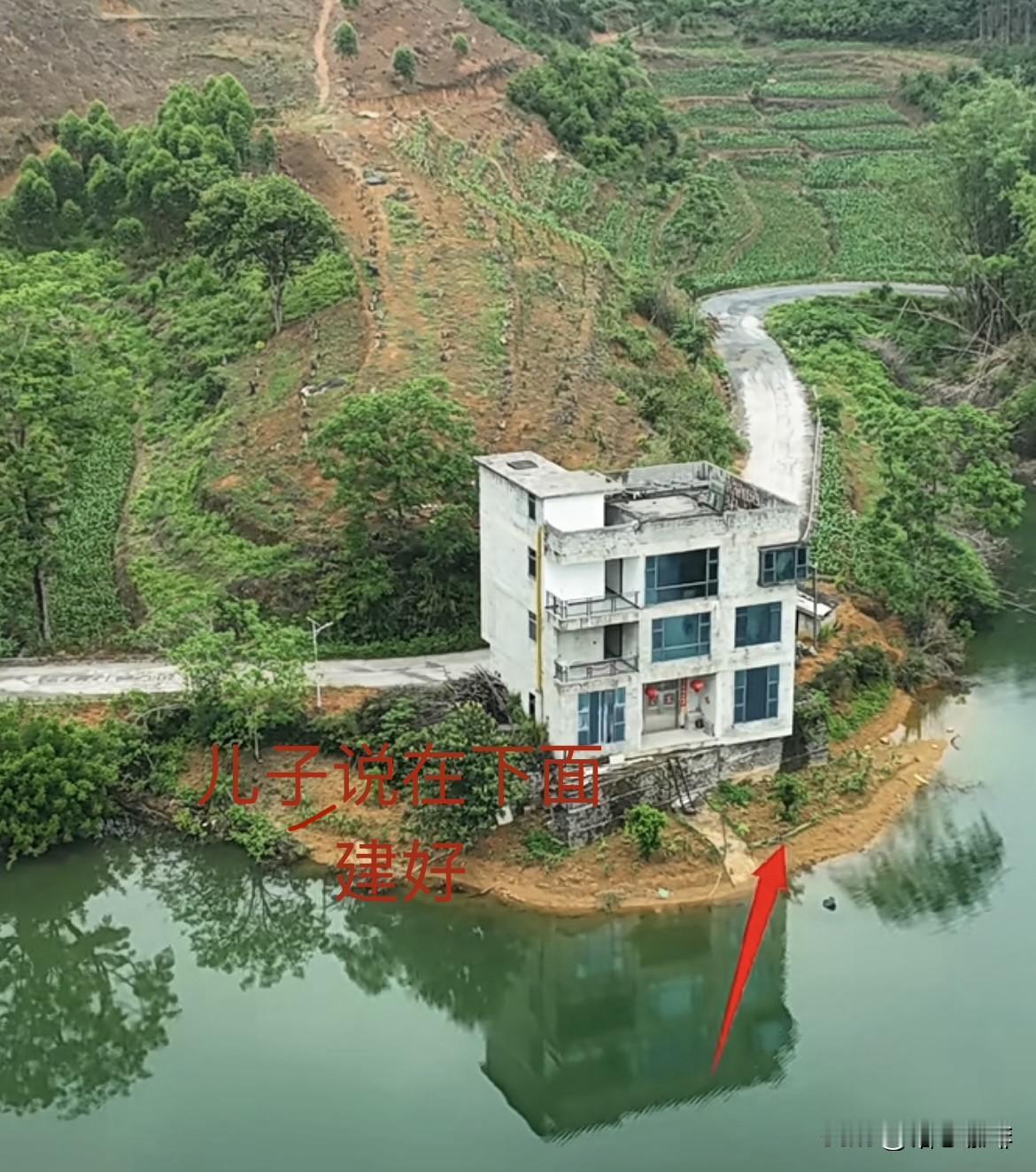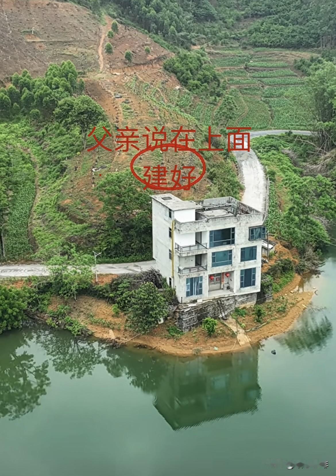 当初建房🏠的时候,为了安全想法 父亲说在上面建房好,儿子就说: 在公路下面建房