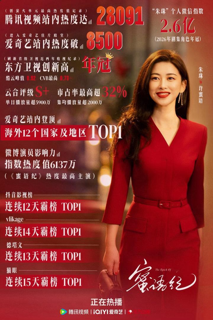 朱珠素颜太权威了朱珠蜜语纪真的是黑马,演员影响力指数top1,角色戏份榜top1,微指2.6亿年度第一。开播收视破0.5%,全网话题阅读量爆表,市占率30.5%,豆瓣最高冲至7.1。真清醒大女主、演技在线、职业规划很棒🎉