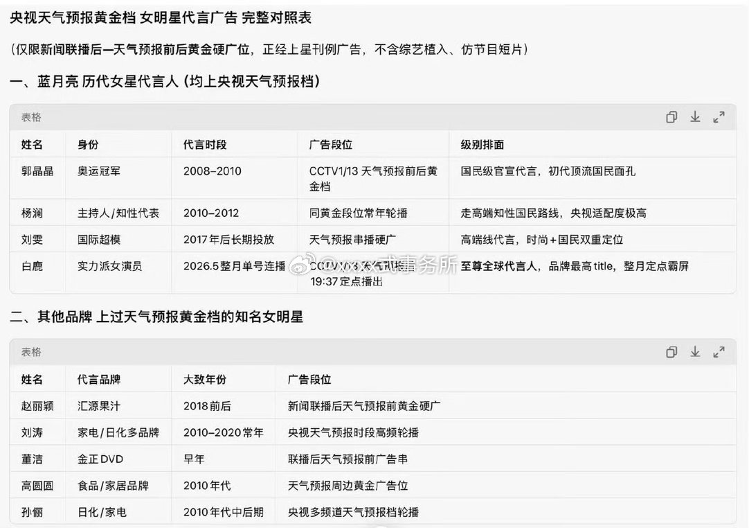 白鹿蓝月亮TVC上线央视了,天气预报后播出,不愧是高国民女艺人