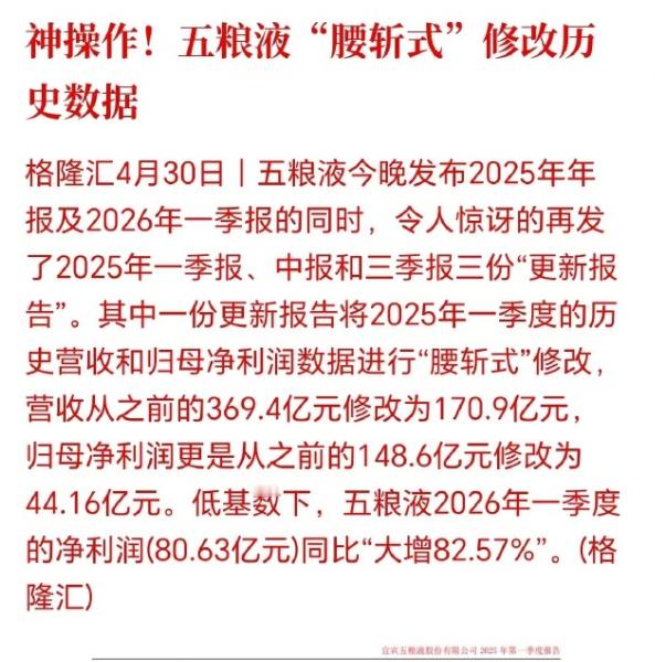 五粮液2026年第一季度利润同比大增82.57%,延迟一天出报表,爆出了这大瓜