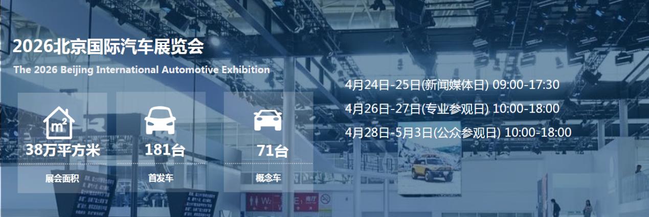 车轮滚滚,时代疾驰。相信2026北京车展所呈现的,不仅是当下汽车产业的巅峰水准,更是中国汽车走向世界,引领全球的坚定信心。4月24日—5月3日,中国国际展览中心与首都国际会展中心,与各位共赴一场属于未来的智能出行之约。