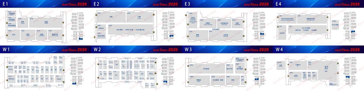 (一)顺义馆(E/W 区):科技新势力与传统豪华品牌的主场顺义馆聚焦自主新势力、科技生态品牌与国际豪华品牌,是智能电动技术的核心展示区。E区以自主新势力为主,E2馆集结问界、小鹏、蔚来等品牌,展示纯电、增程技术成果;E3馆由比亚迪包馆,呈现王朝、海洋系列全矩阵产品;E4馆汇聚奔驰、smart、北汽极狐,演绎豪华电动与本土智能的融合。W区主打豪华与科技生态,W3馆为华为乾崑独立馆,展示智驾、能源全栈技术;W4 馆集结宝马、保时捷、路特斯,呈现传统豪华品牌的电动化转型与燃油性能车的坚守。