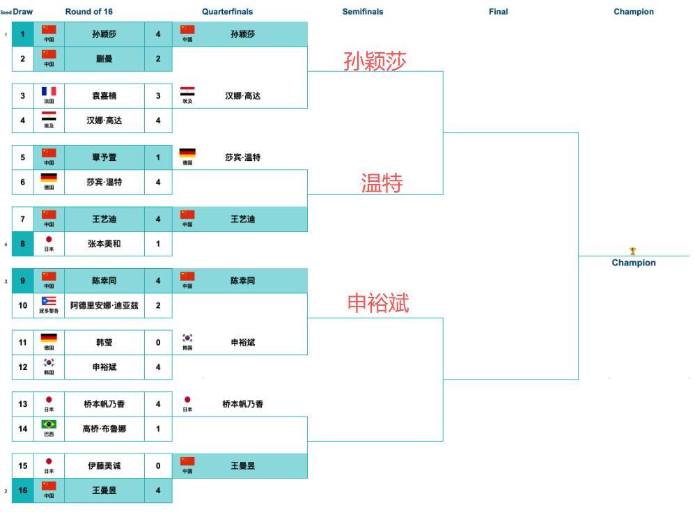 国乒的成绩让人难以满意,除了陈幸同出局之外,王艺迪0-4输给了德国的温特,全场被压制,大迪的发挥不是很好!孙颖莎4-3险胜汉娜高达,埃及小将给莎莎制造了很大的困难,到了决胜局,孙颖莎一度2-6落后,还是13-11赢下来,非常不容易!这场比赛也给莎莎提醒了,接下来的比赛即便大比分领先也不能松懈,在半决赛击败温特不是问题,有机会和王曼昱在决赛会师,她是卫冕冠军,目标夺得世界杯三连冠!