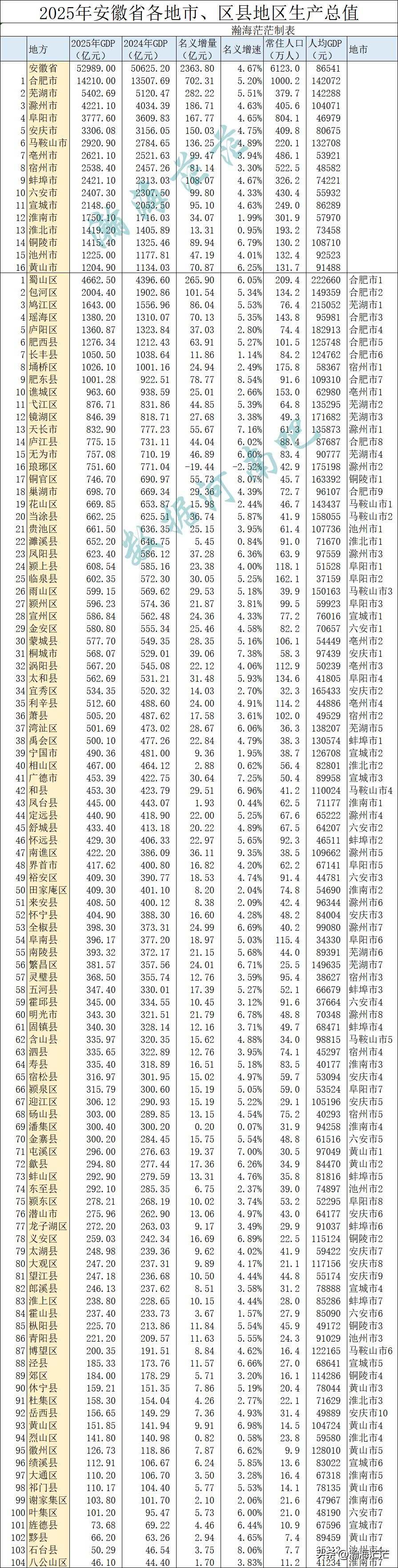 继宁夏、浙江、天津、上海、山东、青海、内蒙、辽宁、海南、四川、江苏、云南、甘肃、贵州、广西和北京出炉了各地市、区县生产总值之后,安徽的这个数据也全部出来了。