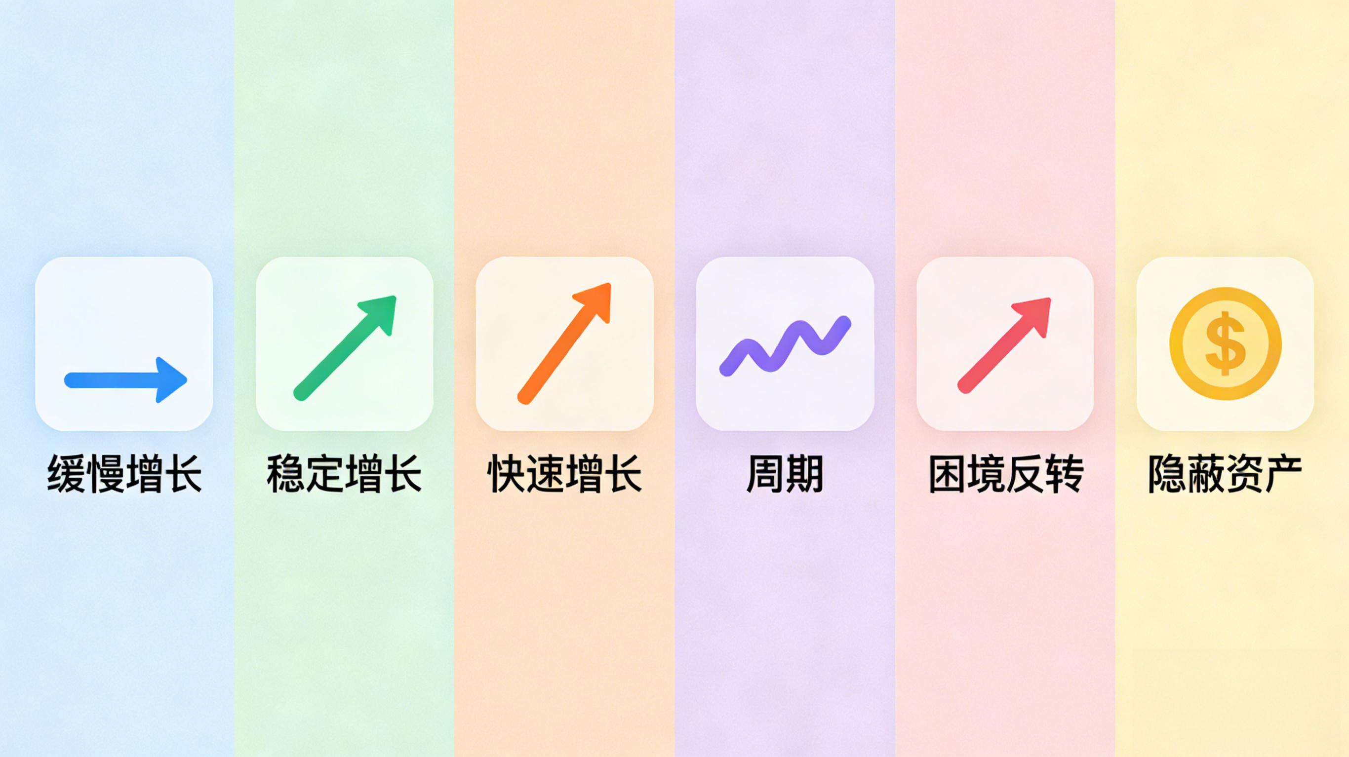 三、背后的方法论:六类公司 + 三特征逛街选股听起来很“随性”,但林奇的背后有一套完整的方法论。