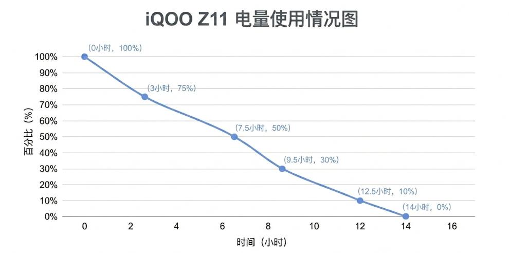 从实际结果可以看到,整整14个小时的游戏消耗,才将整个手机电量完全耗空,续航表现惊人。这个结果意味着轻度用户,甚至完全可以实现两天一充;即便是重度使用,一天高强度使用也毫无压力。