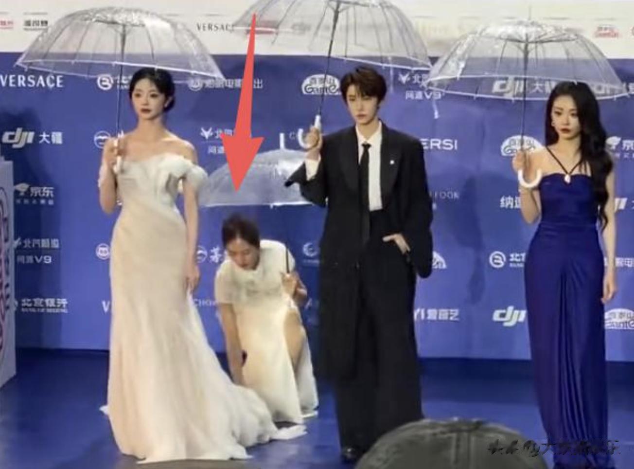 热心网友搜了一下,去年北影节红毯好像也是下雨,但今年主办方好像并没有提前做预案,现场有很多细节都不尽如人意。