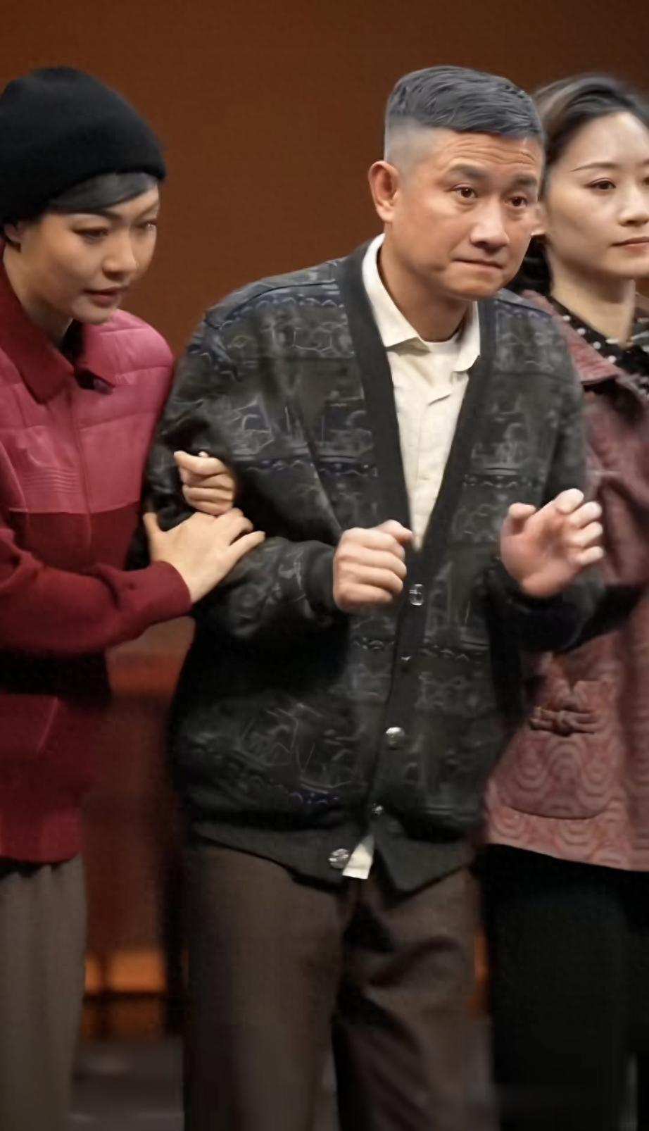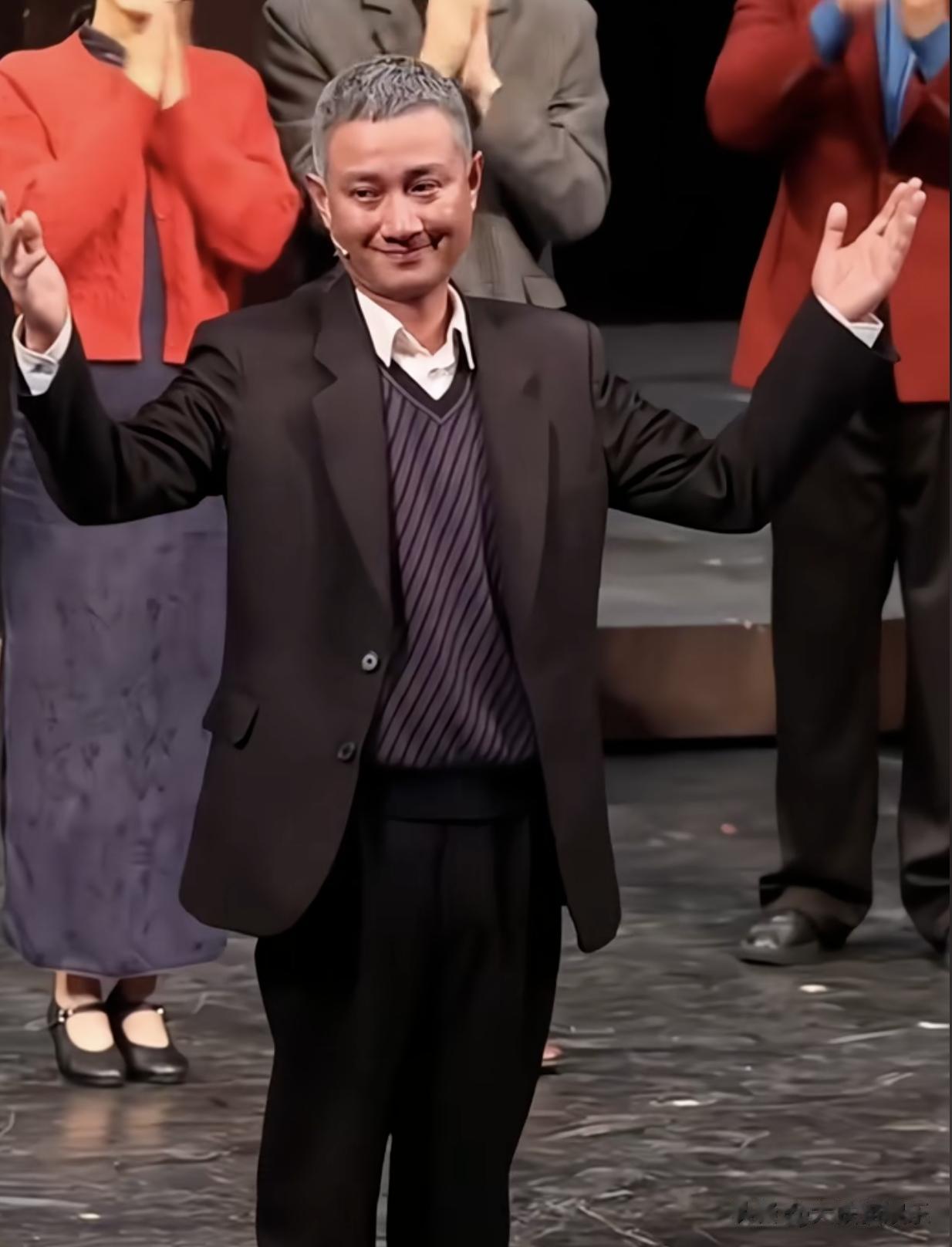 头发花白,出来谢幕眼含热泪,走路颤颤巍巍。