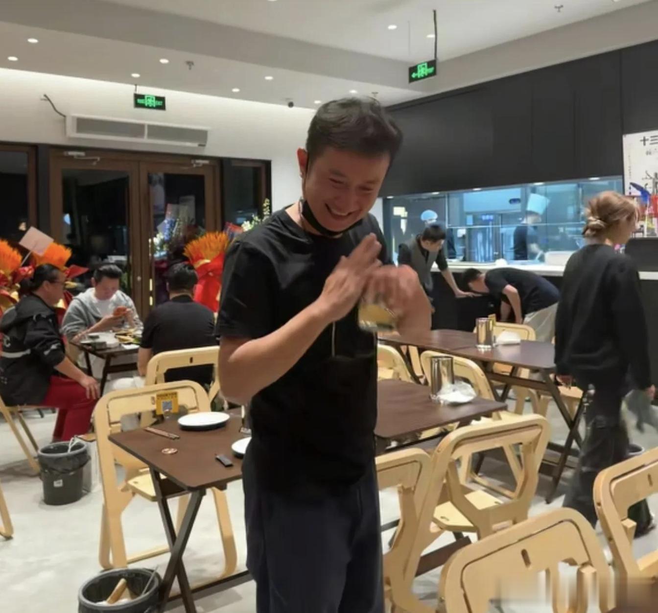 食客送上恭贺祝福,他双手合十回礼,看得出来现在的他真的稳重、接地气了很多,与早年那个意气风发到有点“飘”的男明星判若两人。