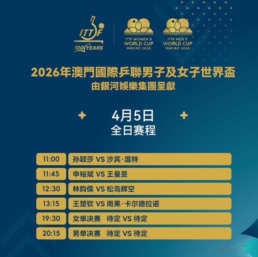 晚间19点30,女单决赛;晚间20点15,男单决赛!毫无疑问,国乒有机会包揽男女单的两枚金牌,3位核心王楚钦、孙颖莎、王曼昱也会全力以赴!