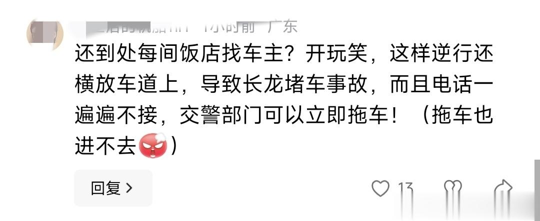 也有网友吐槽,逆行横放车道堵路还不接电话,交警应该直接拖车,关键是拖车也进不去。我太懂这种无奈了,真的气人。