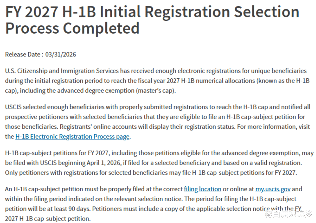 这里特别强调:中签只是H-1B申请的第一步,后续的材料审核、资质核查、薪资核验,才是决定申请能否通过的关键,大家切勿掉以轻心。