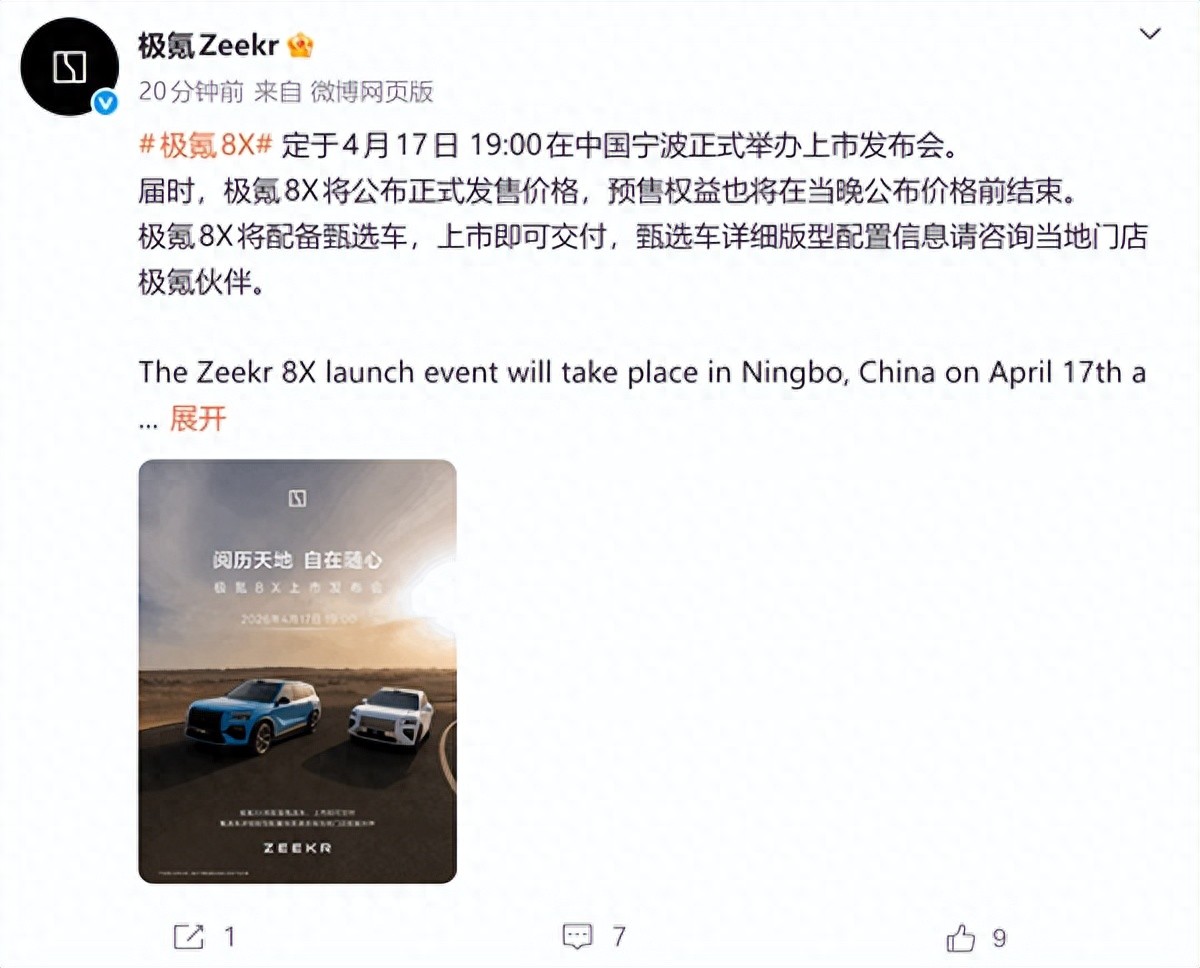 极氪自己也清楚这个问题。预售38分钟订单破万,至少说明市场对这套配置是认可的。但订单是一回事,最终转化成交是另一回事。极氪的定价策略一直比较稳,9X上市时也有人说贵,后来持续热销供不应求。这次能不能复制9X的路径,要看上市权益怎么给。