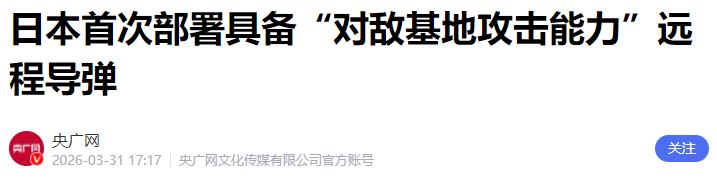央广网:日本首次部署具备“对敌基地攻击能力”远程导弹