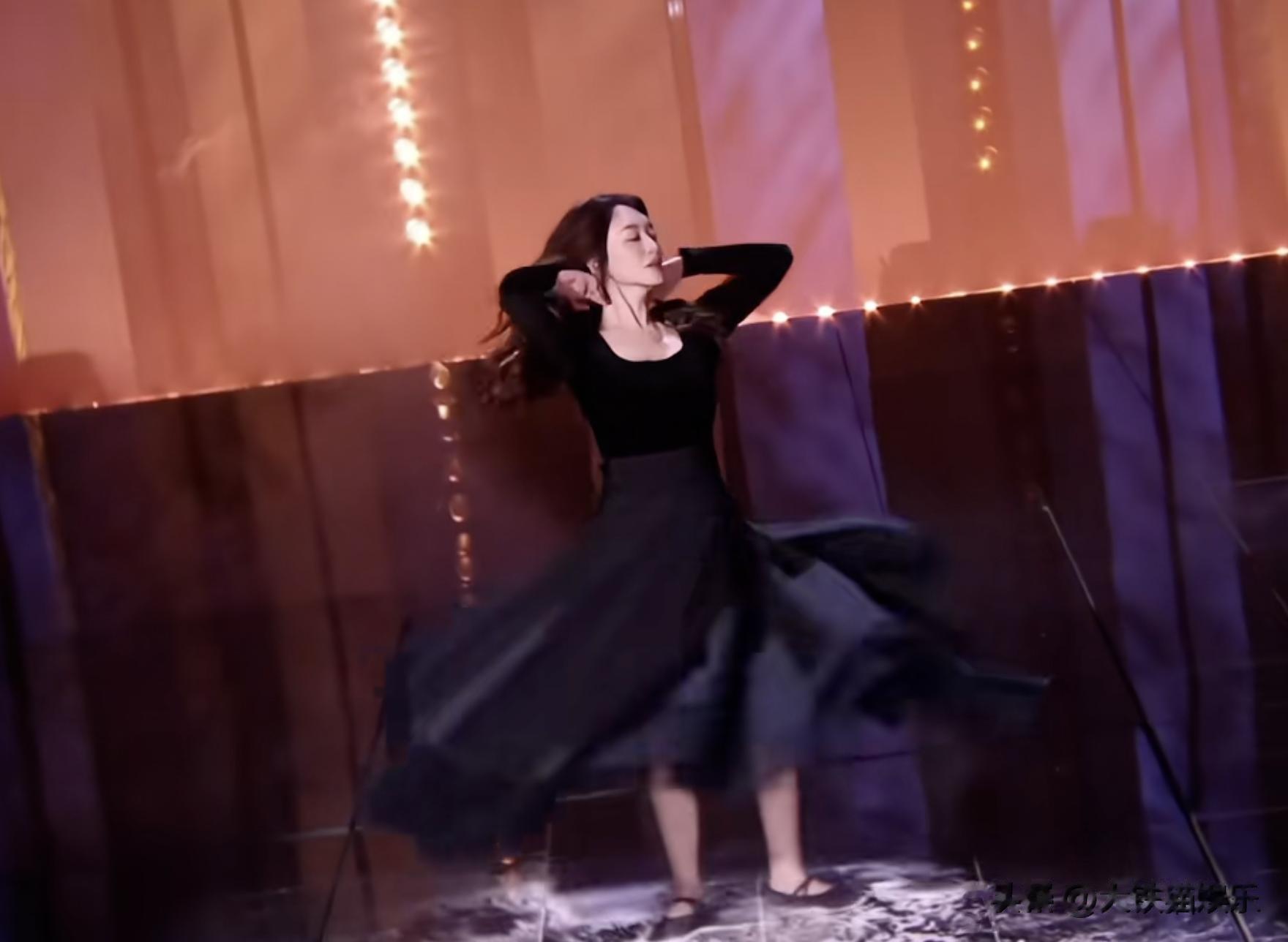 一袭黑色修身舞蹈服,冷白肌肤在灯光下宛若自带柔光,翩翩起舞时身段优美,体态轻盈,仙气萦绕,像“黑天鹅本鹅”。