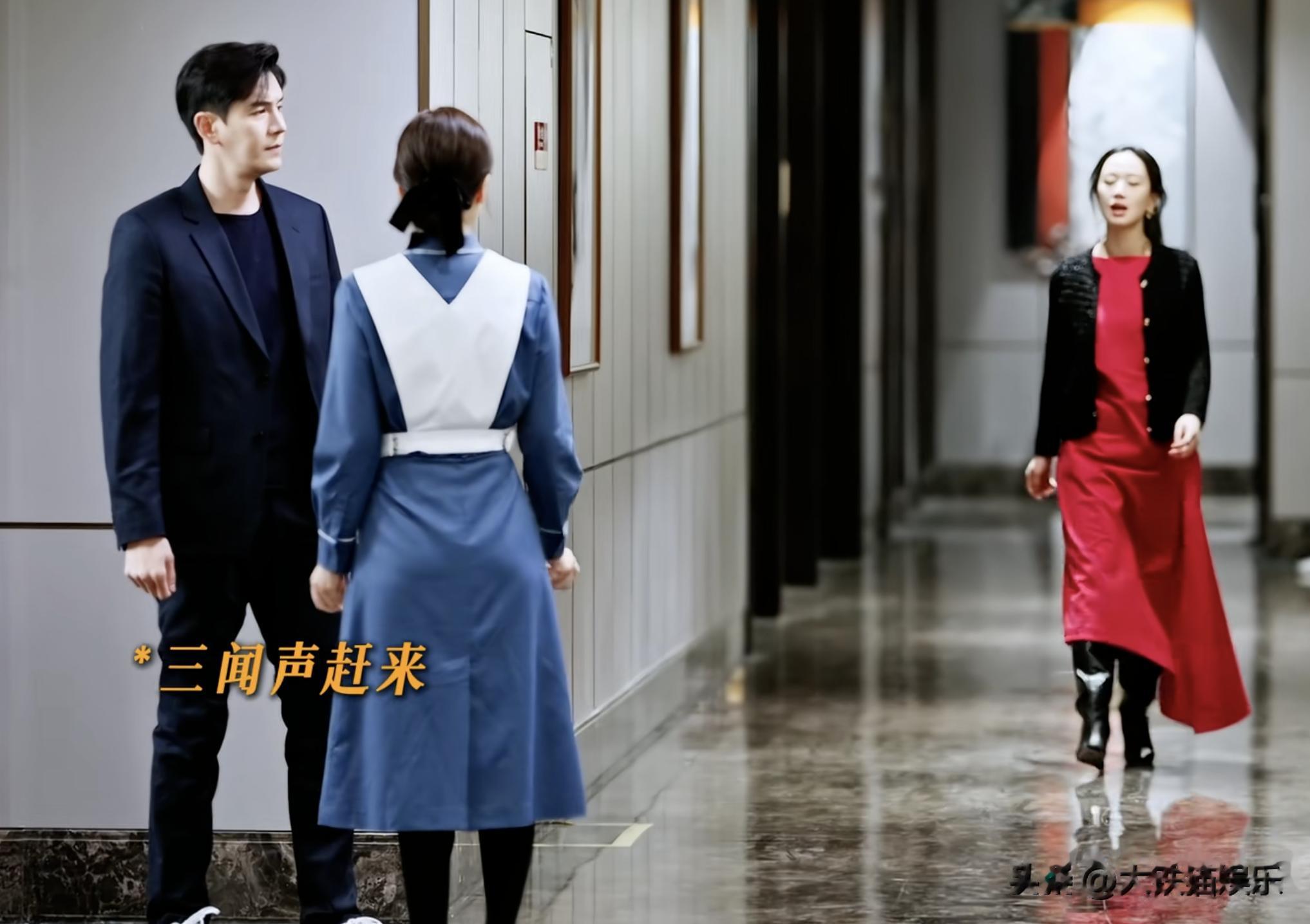这边她一袭红裙,妆容精致,满脸春光,连走路都带着轻快的风,整个人被她自以为的幸福裹得满满当当。