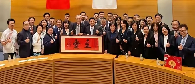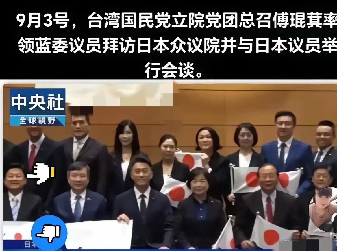 2025年9月3日,咱们大陆举办抗日战争胜利80周年纪念活动。当天傅崐萁带着20多名国民党“立委”窜访日本,一个个举着日本国旗合影。