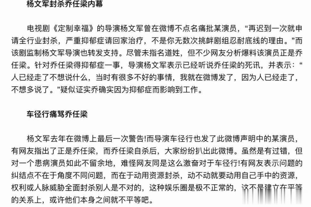 在乔任梁在世时,有一次他拍戏,抑郁症发作身体不适偶尔迟到,被导演公开指责,扬言要全行业封杀。