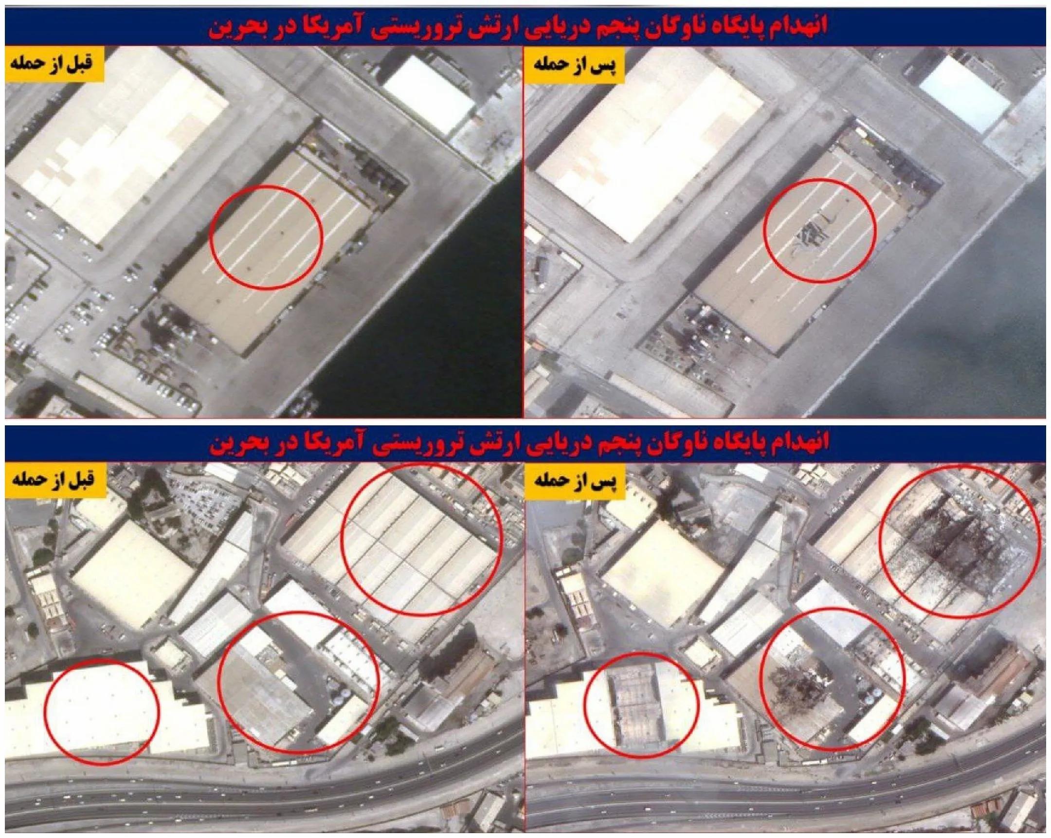 伊朗通讯社发布了,袭击美军基地的最新卫星图片,由图片看到,达夫拉基地,阿里萨利姆基地,乌代里基地,第五舰队基地受损严重!