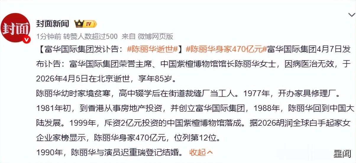 富华国际集团荣誉主席、中国紫檀博物馆馆长陈丽华逝世,享年85岁