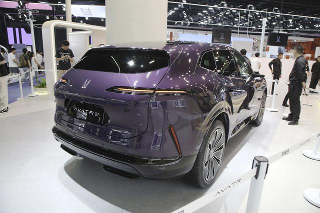 探店初印象:有些配置,本就不该只属于高配进店第一眼,C位摆放的晴蓝色2026款阿维塔07便抓住了视线。作为年度改款车型,它延续了品牌高辨识度设计语言,蝶翼式格栅搭配双层LED日间行车灯,白天点亮后辨识度十分突出;车身侧面的跨界线条颇具巧思,SUV的硬朗轮廓中融入轿跑的灵动,车顶从B柱开始缓缓下滑,既没有压缩后排头部空间,又摆脱了传统SUV方正造型的沉闷,搭配隐藏式门把手与无框车门,时尚感拉满。车漆采用8层复杂工艺,自带细腻光泽,还具备日光自修复细微划痕的能力,日常使用更省心。