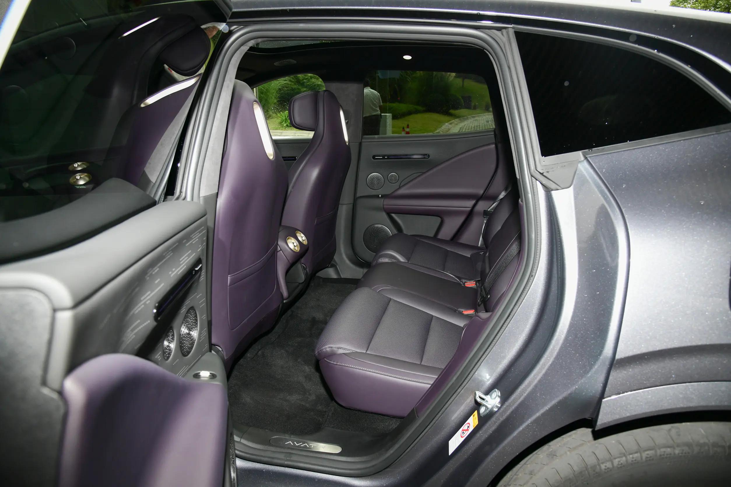 前排双零重力座椅同样是全系标配,支持通风、加热和八点按摩,调节角度充足。需要注意的是,座椅材质并非全系相同,Elite版采用亲肤超纤皮革,Ultra版座椅升级为NAPPA真皮材质;座椅均采用德国巴斯夫研发的MDI微发泡材料,通过3000个独立气泡结构均匀分散压力,配合120mm厚的坐垫设计,能有效缓解长途乘坐的疲劳;8点式按摩系统采用仿人手揉捏手法,提供3种模式和5种力度调节,早高峰通勤1小时,调至120°躺姿打开按摩,下车后腰部也不会酸胀。后排座椅宽度1317mm,坐三位成年人不拥挤,中间地台近乎纯平,兼顾每一位乘客的体验,后排有效腿部空间达965mm,长途乘坐也不会局促。