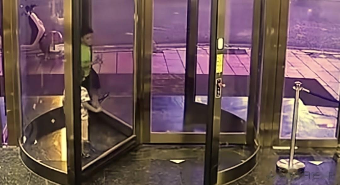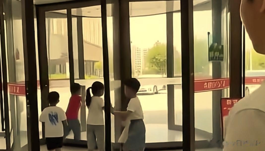 三月下旬的一天,在一家连锁酒店的大堂里,两个小孩在旋转门里边跑着玩,他们不是站着不动,而是用手扶着门框、来回推动门扇,结果门转得飞快,眼看就要夹到手了,酒店保安看到这情形,就走过去轻声提醒:“小朋友,这里危险,先出来吧。”他还顺便对旁边的大人说:“您帮忙照看一下孩子。”