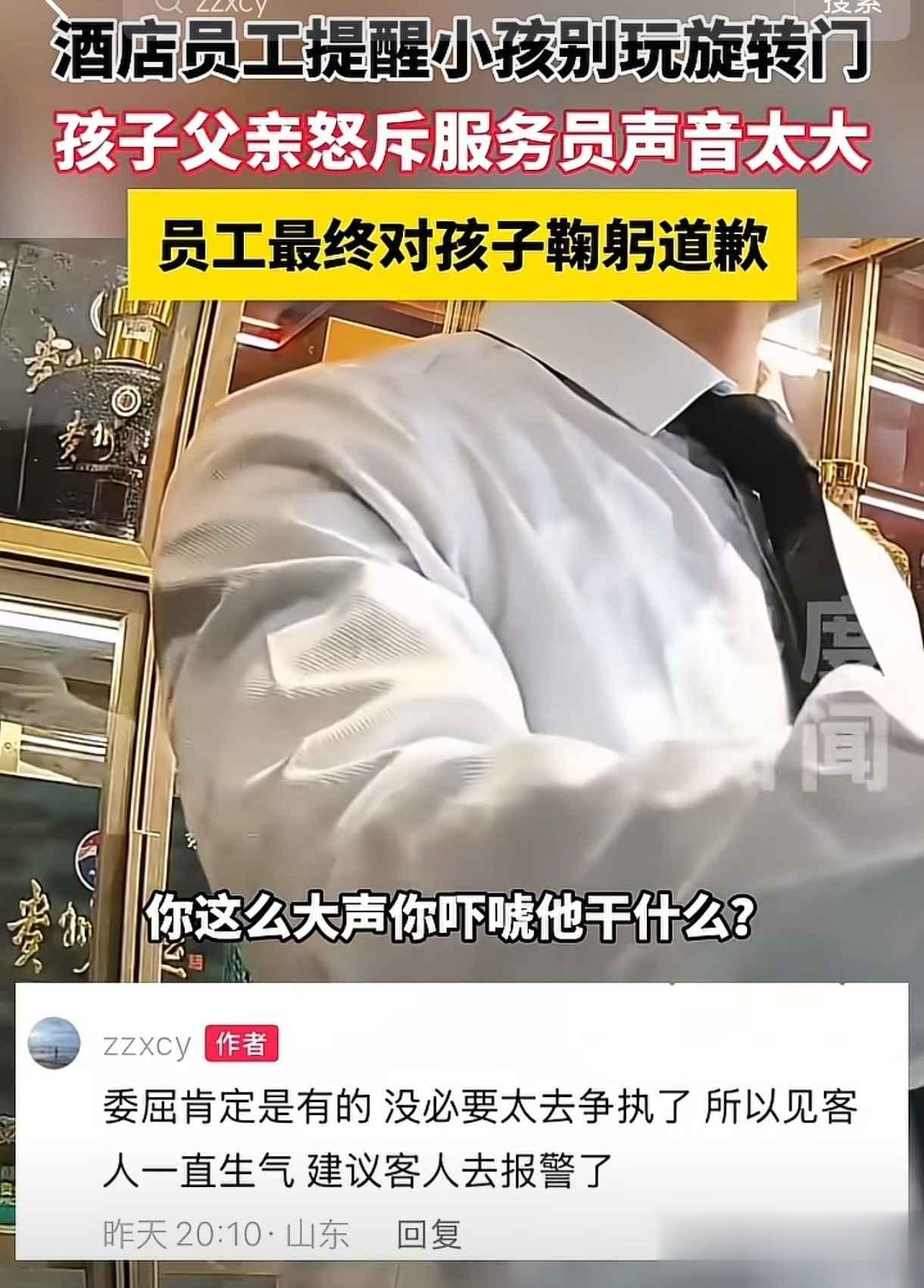 这位家长听完,没有去管孩子,反而发起火来,觉得保安是在怪自己没带好小孩,当场就吼起来,说保安多管闲事,还直接打电话报了警。警察来了以后,担心影响酒店生意,就让保安先道个歉,把场面缓和下来。这事传到网上,一开始大家都以为保安做得过分了,毕竟孩子还小,提醒一句怎么就要报警呢。