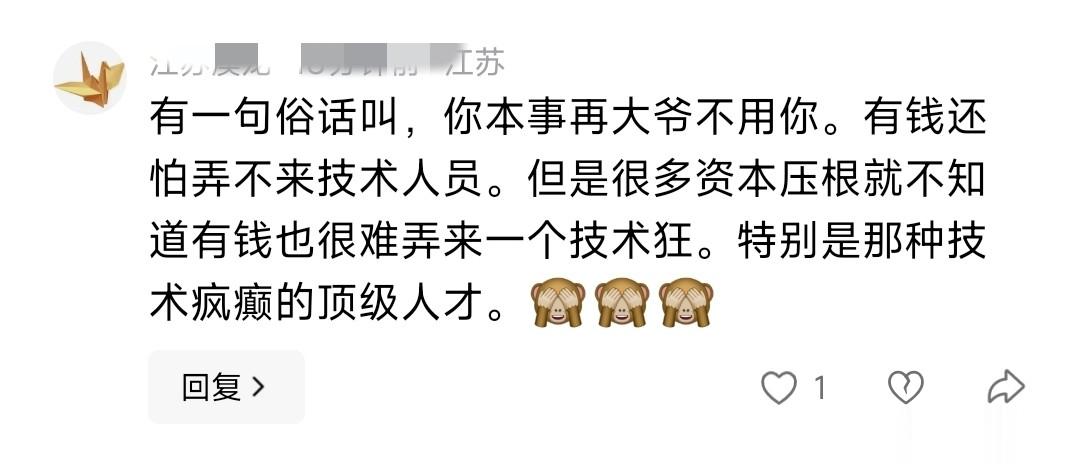 我觉得这话太对了,真正的顶级技术人才,真不是光靠钱就能砸来的。