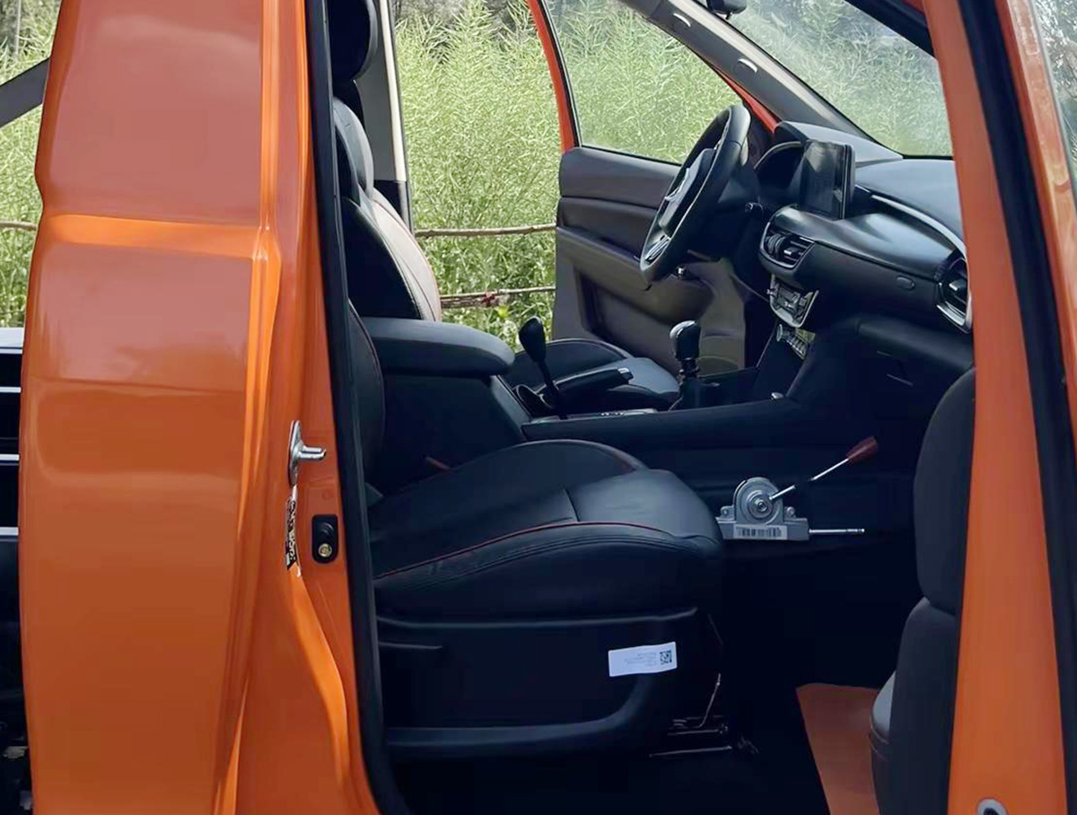 内饰部分,中控台的造型和福田将军F9基本一致,使用了悬浮式的中控屏。另外能够看到实车采用的是手动变速箱。