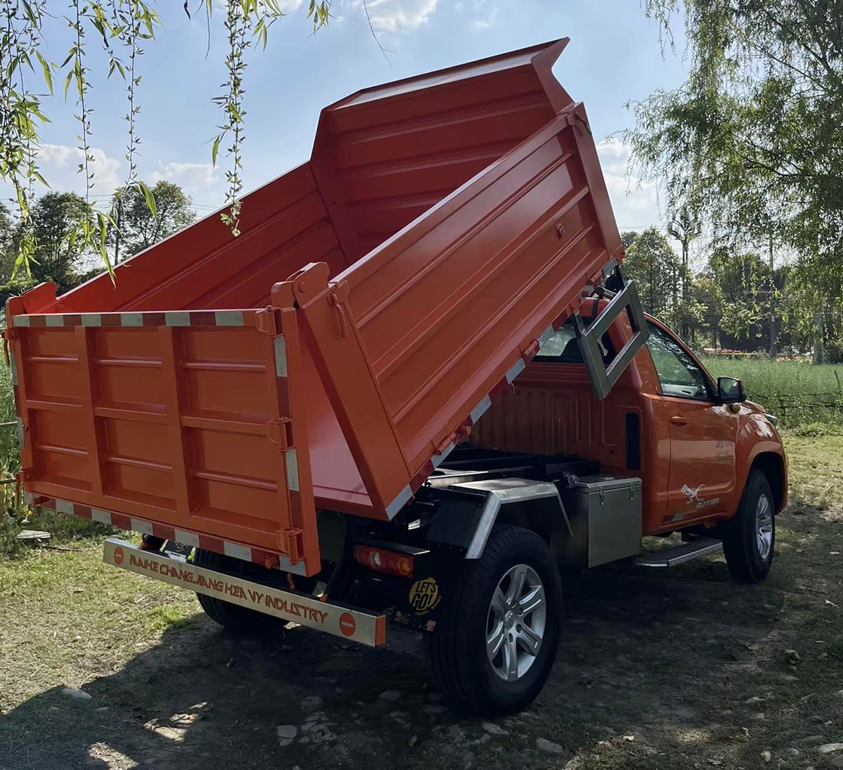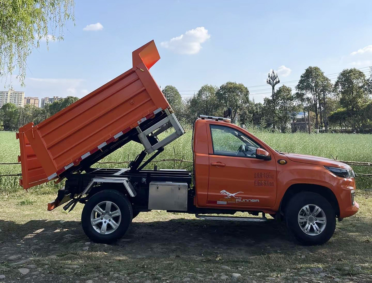 新车的亮点就是其单排翻斗的设计了,后斗带有液压升降装置。其栏板的高度达到了800mm,从其4495kg的总质量来看,其载重量预计会超过2吨。