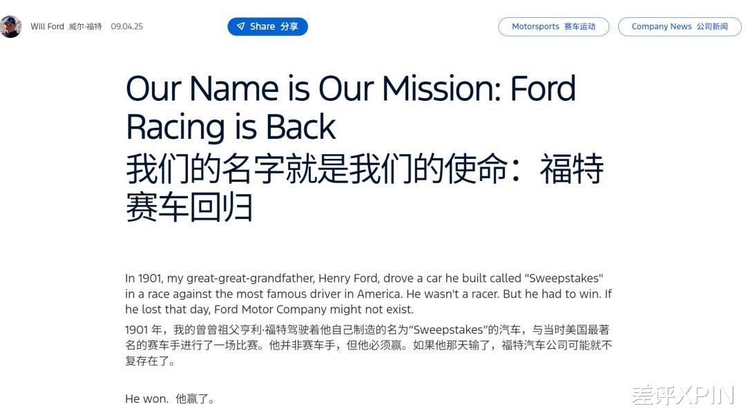 从去年开始,福特把原先名叫 Ford Performance 的性能部门改成了 Ford Racing ,也就是福特赛事部门。