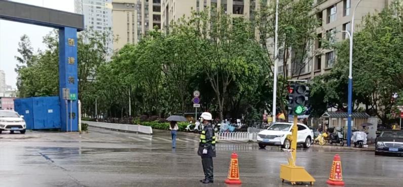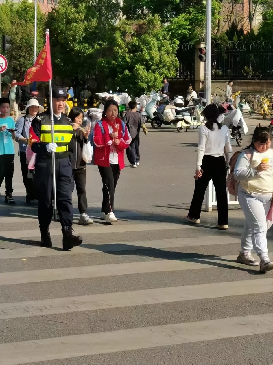俊发社区的各大学校门口,一群熟悉的身影已经到岗——他们身着整齐的制服,手持引导旗,目光专注地注视着来往的车辆和孩子们。