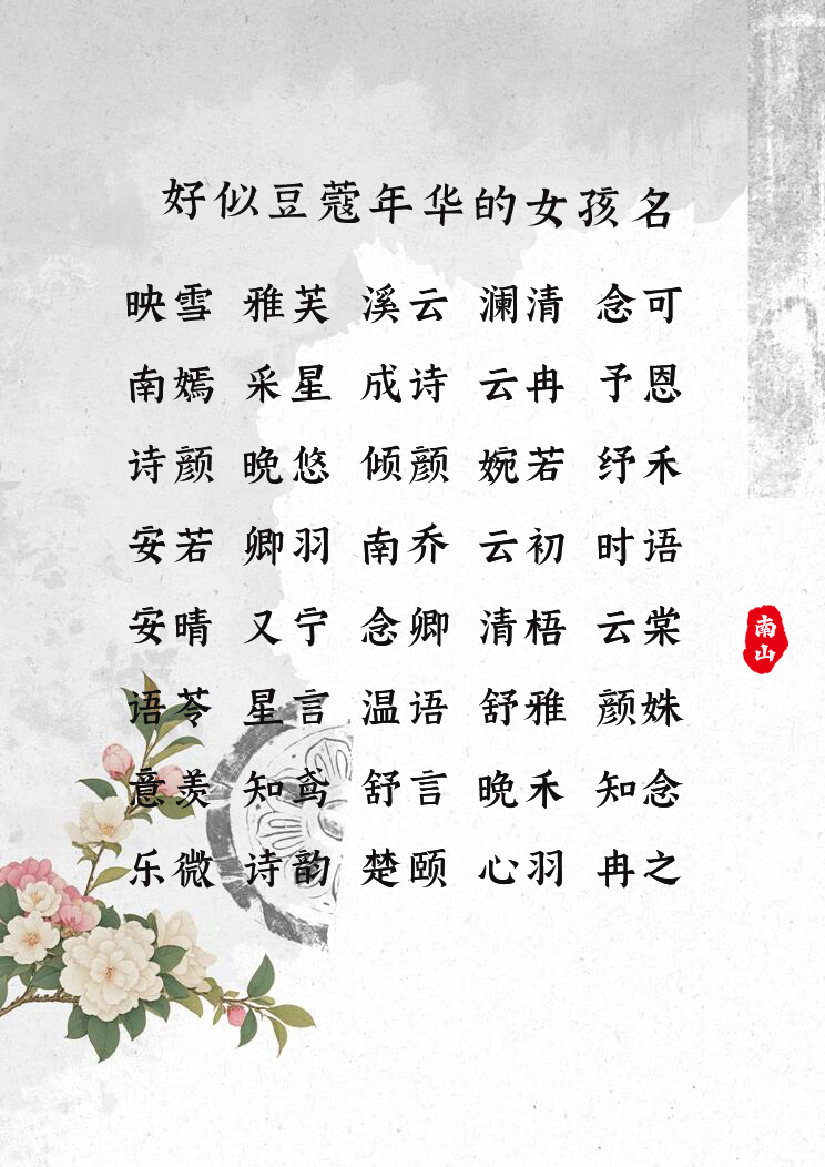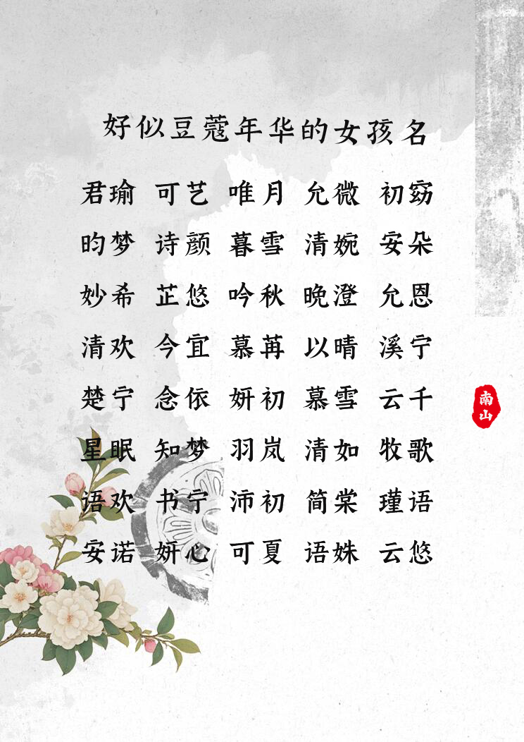 好似豆蔻年华的女孩名字,个个气质清雅,人见人爱