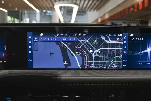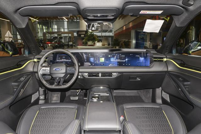 进入座舱,未来感与豪华感瞬间拉满,吸睛的莫过于27英寸4K分辨率中控大屏,搭配12.3英寸全液晶仪表盘,形成连贯式座舱布局,屏显清晰细腻,操作流畅不卡顿,科技氛围直接拉满。车机搭载SYNC车载智能系统,支持百度地图导航、AR实景导航、OTA升级及4G网络连接,导航精准不迷路,后续还能通过OTA升级优化功能,持续提升用车体验。