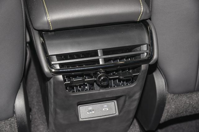 空间表现是中型车的核心竞争力,这款车的空间利用率堪称惊艳,很好适配家庭出行与日常通勤。以身高182cm的体验者为例,将前排调整至舒适驾驶坐姿后,头部仍有一拳余量,不会有压抑感;切换至后排,腿部空间可达两拳以上,头部保留四指距离,久坐也能从容舒展。得益于2945mm长轴距与掀背式车身结构,后排中央地台凸起较低,三人同行时,中间乘客的脚部空间也能得到妥善照顾,无需蜷缩双腿,提升全员乘坐舒适度。