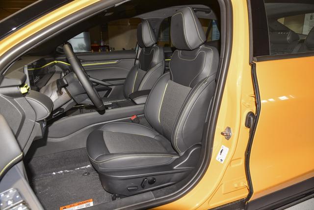 细节配置上,ST-Line版本相较普通运动版有明显升级,每一处细节都贴合用户需求:外后视镜增加记忆与倒车自动下翻功能,倒车时自动调节角度,轻松看清后轮路况,减少剐蹭风险;内后视镜为自动防眩目类型,夜间行车时,能有效避免后车灯光刺眼,提升行车安全;座椅材质升级为皮/翻毛皮混搭,加入前排加热、通风及主驾记忆,舒适性大幅提升;灯光系统新增7色车内氛围灯,可根据心情切换,营造所属座舱氛围;多媒体方面,B&O音响与AR实景导航的搭配,让出行更具乐趣与便捷性。